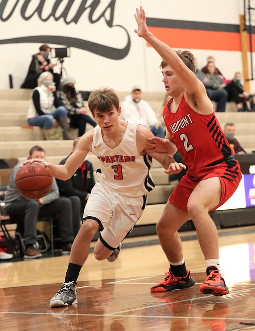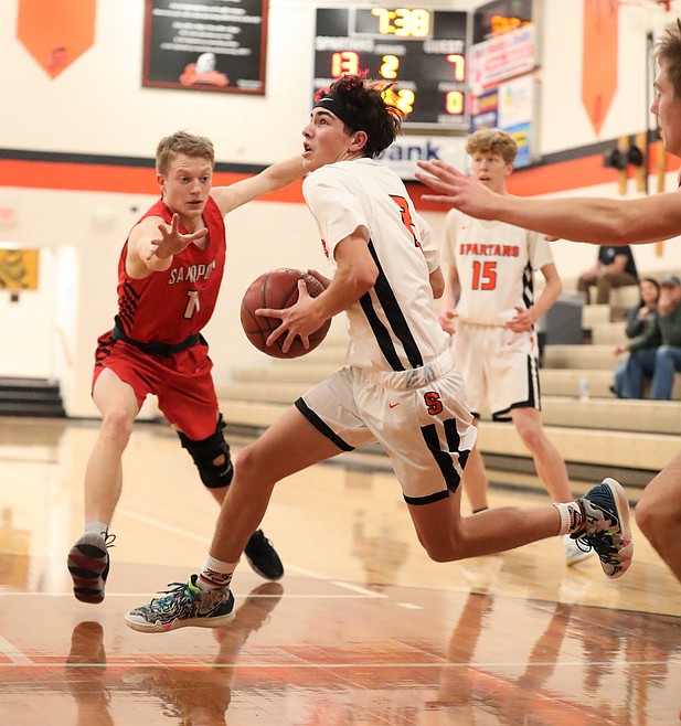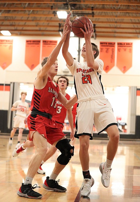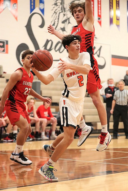 Four players reached double figures for the Spartans. Trentyn Kreager led the way with 19 points, Blake Barrett tallied 14, Jordan Nortz added 12 and Travis Mathews knocked down 10 clutch free throws in the fourth quarter to finish with 10 points.