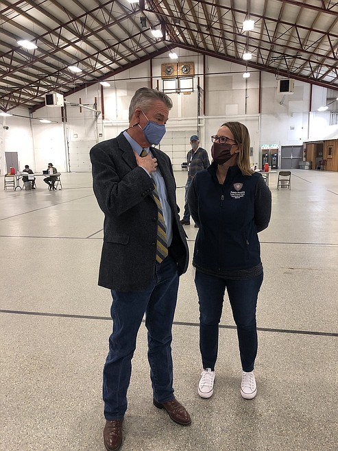SANDPOINT — Governor Brad Little paid a visit to a vaccination clinic at the Bonner County Fairgrounds while touring the Panhandle on Friday.