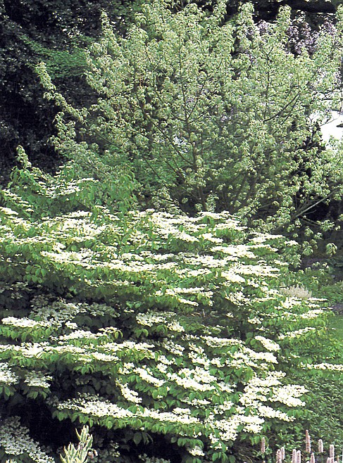 Cornus — our native Red and/or Yellow Osier dogwoods, with their bright stems enlivening winter landscapes, are generally shrubby in groupings but when grown singly, mature into a more tree-like form. These are choice for small landscapes, with all-season attractiveness and the bonus of making great feature-plantings when grouped closely together or staggered in threes. Depending on your choice, the bright red — or gold — stems provide gorgeous wintertime color. Viburnums don’t seem to get a lot of notice in the landscaping world, but let’s take a special look at their versatility, practicality and beauty. Our native Viburnum edule —or Highbush cranberry (not to be confused with bog or edible cranberries (vaccinium), has clustered white flowers and berries appreciated by birds. I once pointed out that the fruits of Viburnum were gathered by the earliest settlers and stewed, sugared and eaten as a sauce similar to cranberry sauce. From that humble beginning there are now literally hundreds of Vibernum cultivars , many of which have been trained for re-blooming.