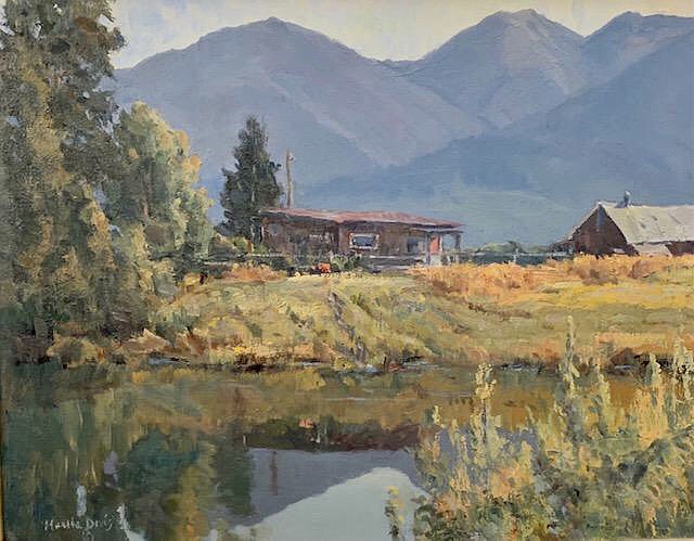 She has traveled throughout Montana with artist friends, as well as Arizona, and Italy and the world, which connects her to the subjects she paints in plein-air and later develops into finished paintings in her studio. She maintains a studio in Kalispell and Green Valley, Arizona.
