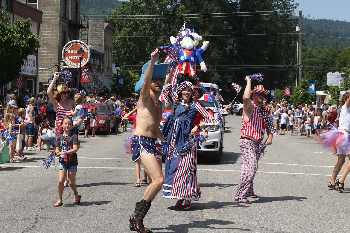 One man, wearing only flag shorts, a giant blue cowboy hat and cowboy boots, led an eclectic and energetic dance group as they turned and twirled and hopped and bopped their way through the parade.