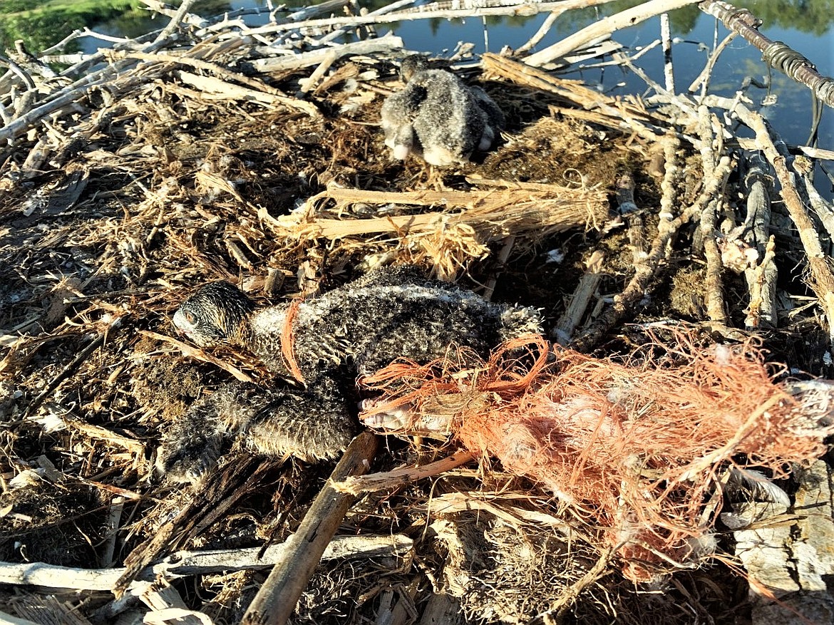 CHARLO — Thanks to a live camera feed at explore.org, people from all over the world were watching an osprey family with young chicks in a nest near Charlo last week when trouble struck. One of the chicks was tangled in orange baling twine. After a successful rescue, a chick was again entangled Monday in another piece of twine newly added to the nest.