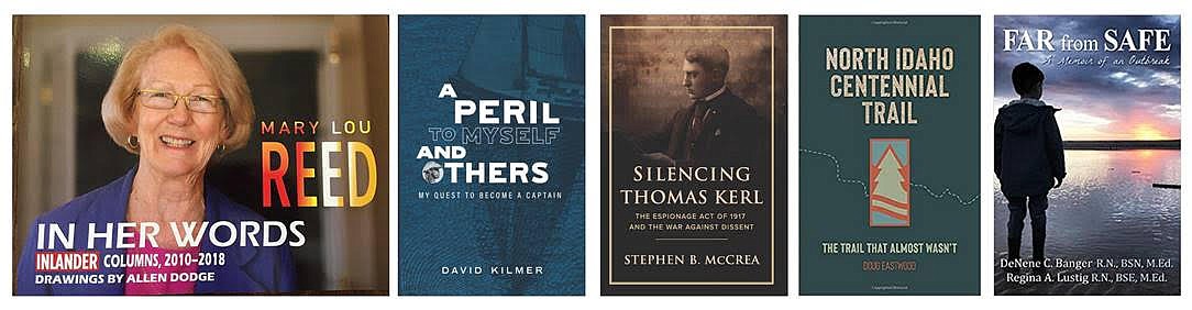 The evening is being underwritten by the Parker Toyota. The authors will be speaking on their most recent works. Mary Lou Reed authored "In Her Words" in May 2021, David Kilmer published "A Peril to Myself and Others, My quest to become a captain" in April 2020, Steve McCrea also published "Silencing Thomas Kerl: The Espionage Act of 1917 and the War Against Dissent" in April 2020, Doug Eastwood wrote "North Idaho Centennial Trail: The Trail that almost wasn’t" in January 2020, and DeNene C. Banger & Regina Lustig published "Far From Safe" in June 2020