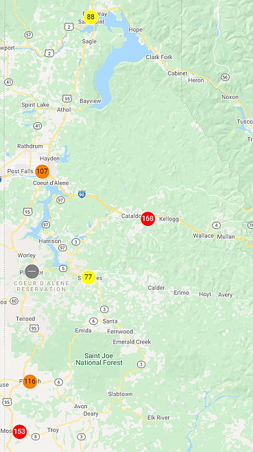 PINEHURST— The Idaho Department of Environmental Quality (DEQ) has downgraded the air quality rating in the Silver Valley to a 168 AQI or “unhealthy” level.