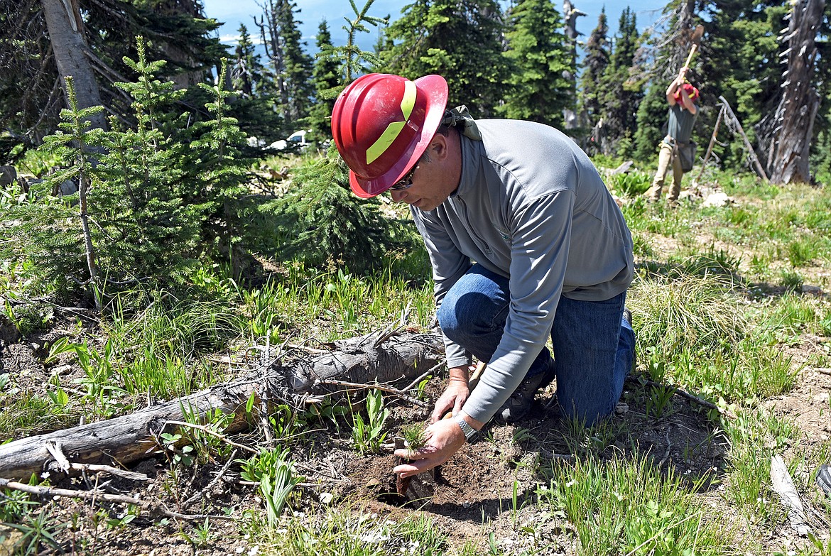 Flathead Forest culturist Karl Anderson, who in part organized the tree-planting event, was one of the first people climbing trees on the front side of Big Mountain to collect whitebark seeds in the late 1990s, he says. He has personally seen and helped along the efforts to save the species and to witness it all come together by planting seedlings back at WMR was a treat for the culturist who’s spent 32 years with the forest service.