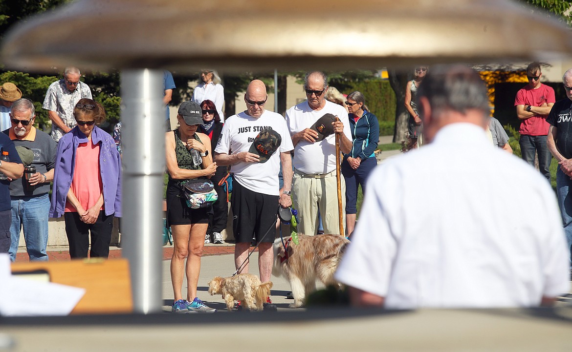 At McIntire Park behind Hayden City Hall, about 150 people gathered in shade and sun for a 45-minute ceremony that included Ashley Cleveland presenting a powerful rendition of the national anthem.