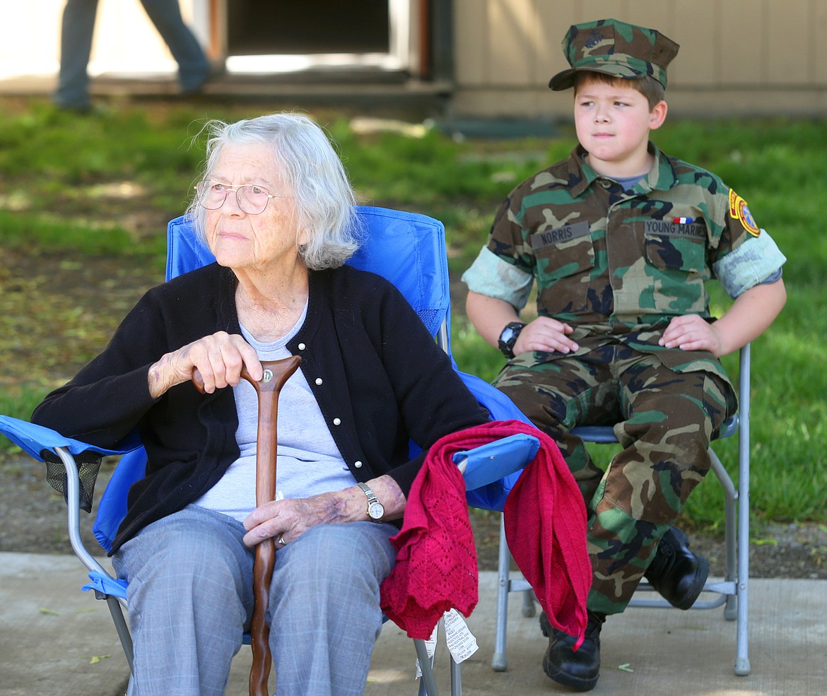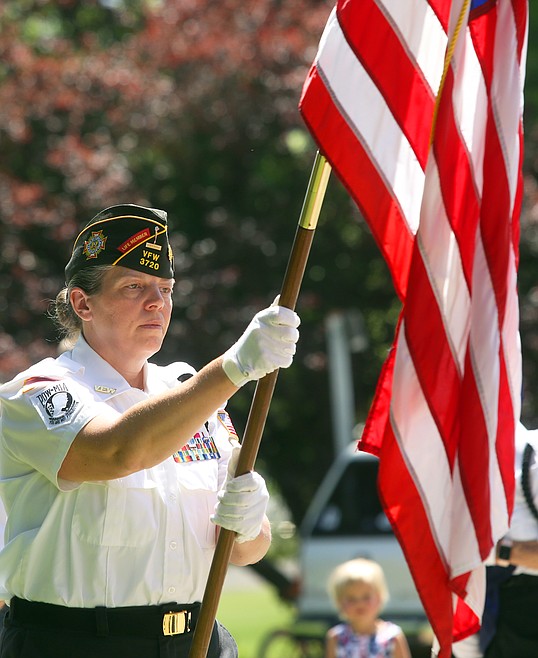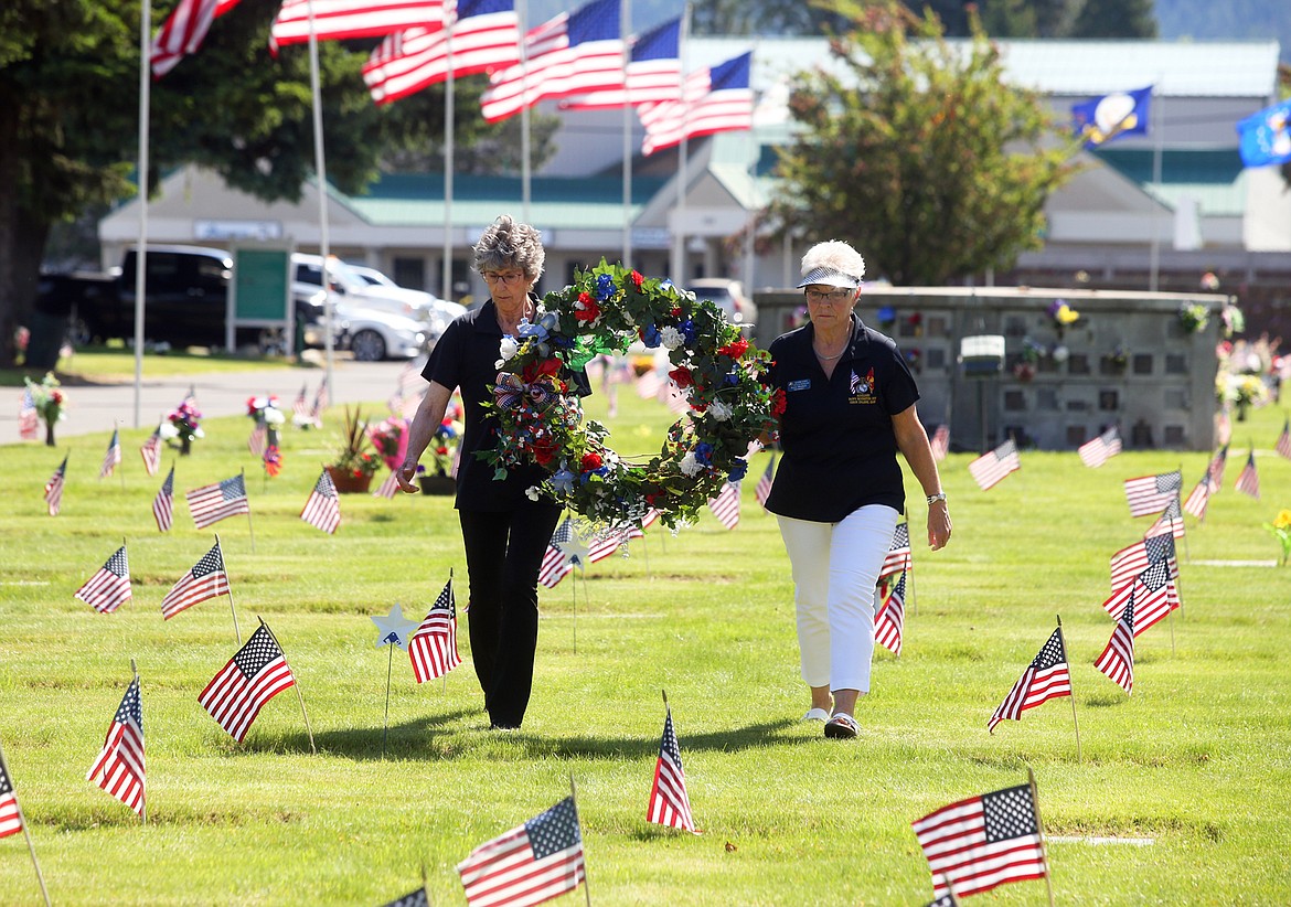 Early in the ceremony, Karen Wambolt of Rathdrum and Julia Mangan of Coeur d’Alene stepped in when some confusion arose over who was bringing the wreath to the front. Both women quickly responded to the question of “Where's the wreath?” and took a long walk across the green grass to retrieve it and put it in its proper place.