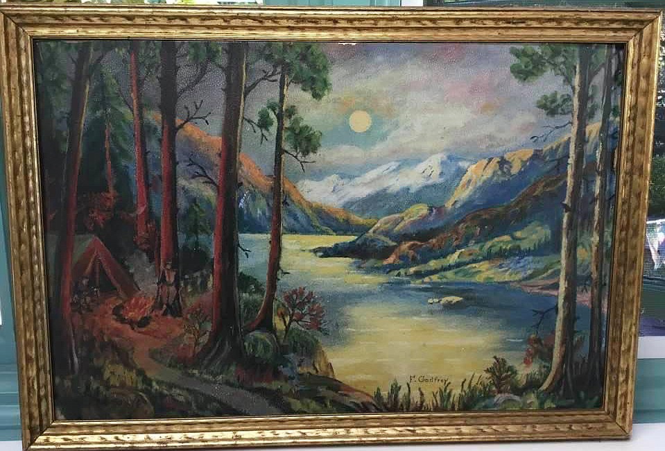 These artifacts of a daddy's love were found tucked in the back of a scenic campsite painting, signed by the father, "F. Godfrey," and found by antique collector Diane Kasparek 30 years ago.