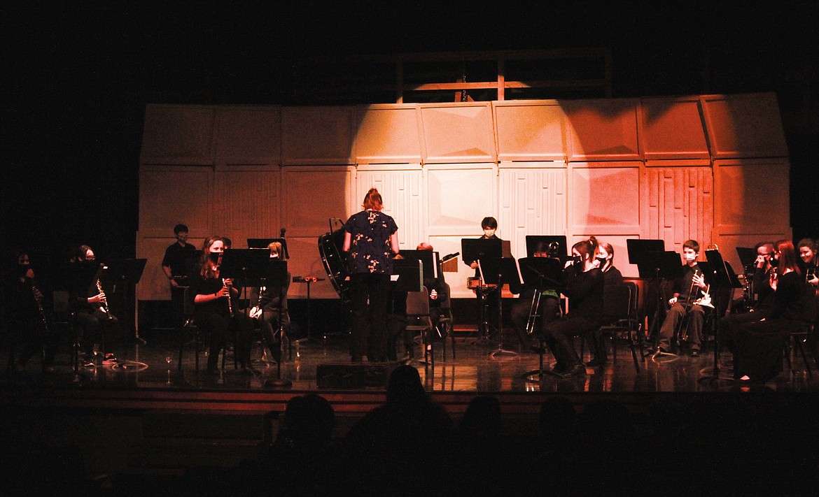 Next came a selection of ensemble numbers. All the numbers were recorded for submission to a local solo and ensemble competition, which according to band teacher Jessica Hanna, is more of an opportunity for feedback and growth. She said students get the chance to receive constructive feedback from college professors and professional musicians, feedback which they then use in the classroom.