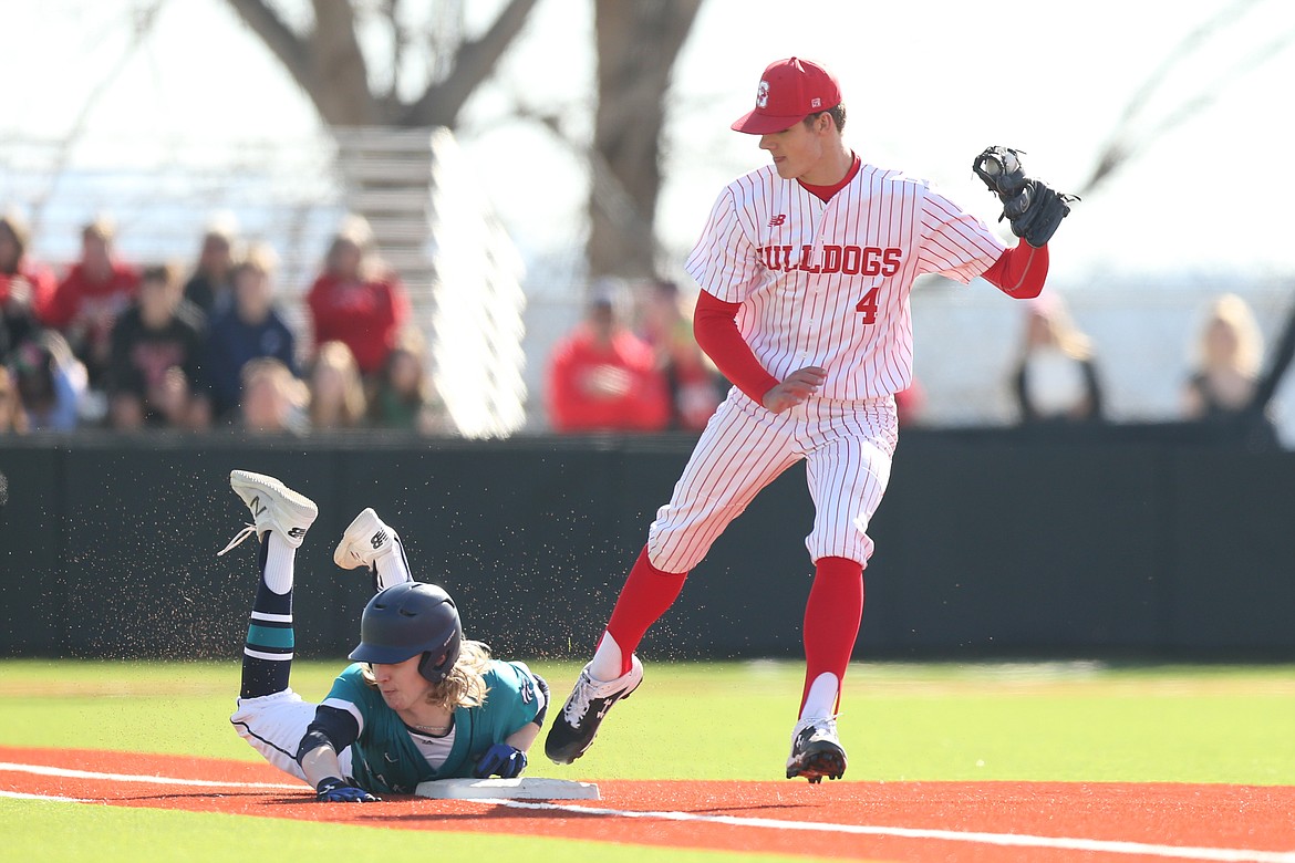 In the bottom of the fourth inning, the Bulldogs scored seven runs to take an 8-5 lead over the Timberwolves and they never relinquished it.