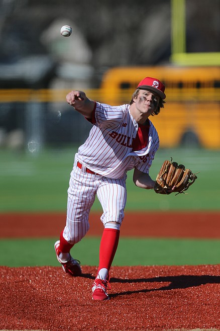 Senior pitcher Avery Bocksch was able to fend off Lake City in the final inning to secure the save and a 9-8 season-opening IEL victory for the Bulldogs.