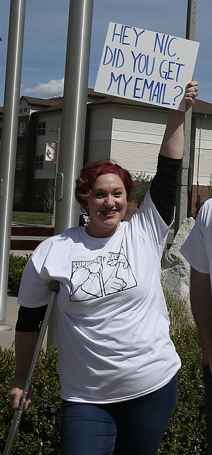 Between 30 and 40 protesters showed up outside the Edminster Student Union Building Wednesday to advocate for a teacher they say North Idaho College is wrongly pushing out the door.