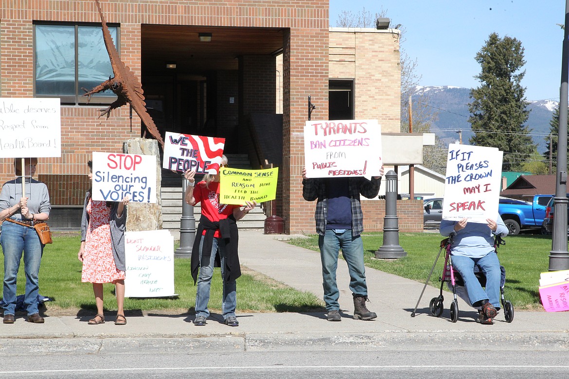 Led by Trego resident Catherine Kahle, the group picketed outside of the Lincoln County Courthouse complex May 5 ahead of a scheduled meeting with commissioners. Their demands were simple: Purge Jan Ivers and Jim Seifert from the county health board.