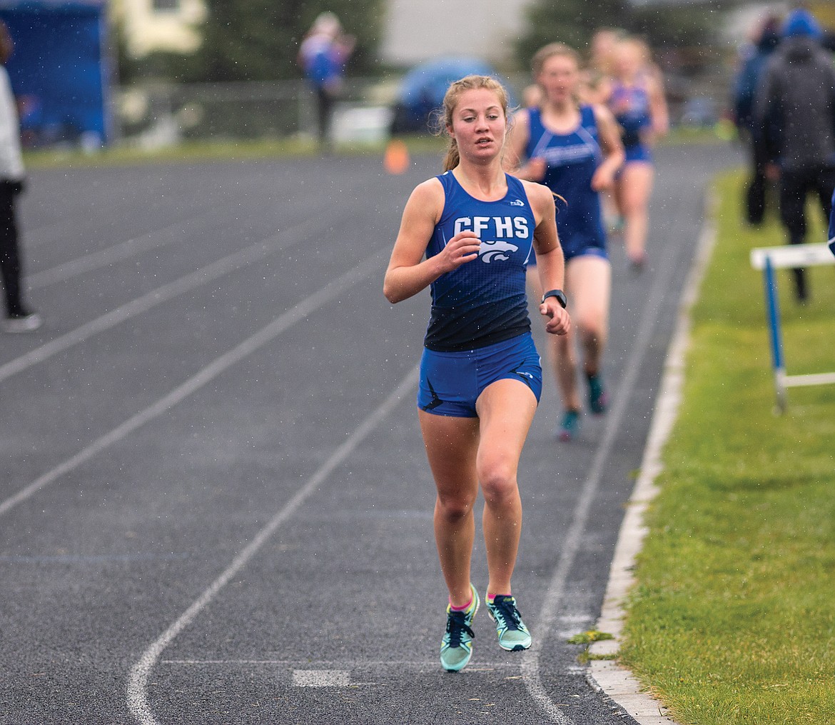 1600 — 1, Katie Gleason, Cor, 5:48.44; 2, Laurie Davison, Cor, 5:55.26; 3, Morgan Grube, Wfh, 5:58.45; 4, Courtney Hoerner, CF, 6:00.78; 5, Julie Martin, CF, 6:19.03; 6, Hazel Gawe, Wfh, 6:24.15.