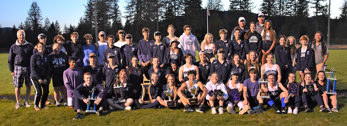 The last time the Badgers boys track team won the district title was over a decade ago in 2002. In 2003 the athletic directors of the Intermountain League voted to have traveling trophies for the league and district titles. Timberlake High School has been engraved on the boys’ trophy every year since.
