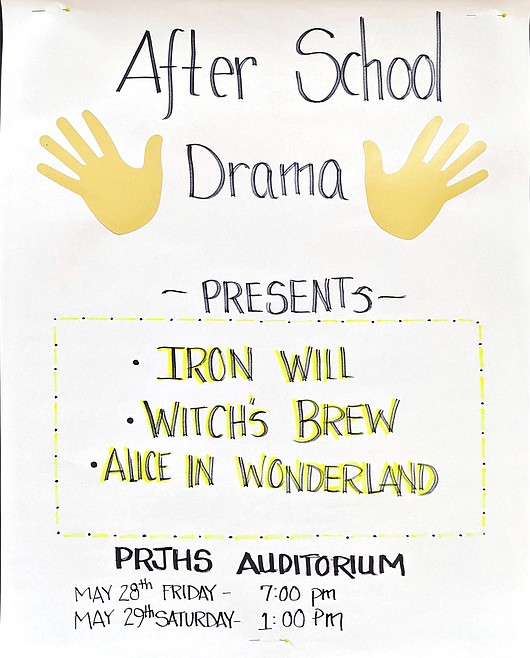 The Priest River Lamanna High School Drama Club will be hosting a night of one-act plays including “Iron Will”, “Witch’s Brew” and “Alice in Wonderland” May 28 and 29.