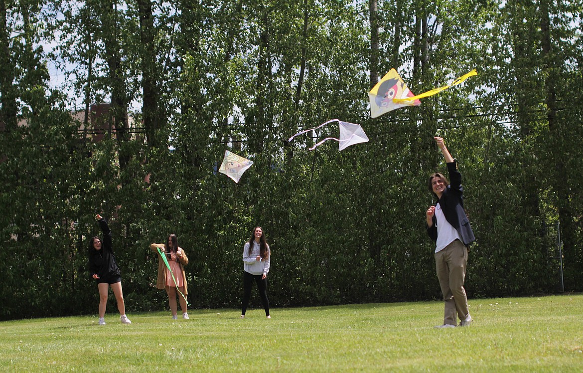 On a warm Friday afternoon, students at Sandpoint High School make their way to the south lawn to fly kites with their friends.