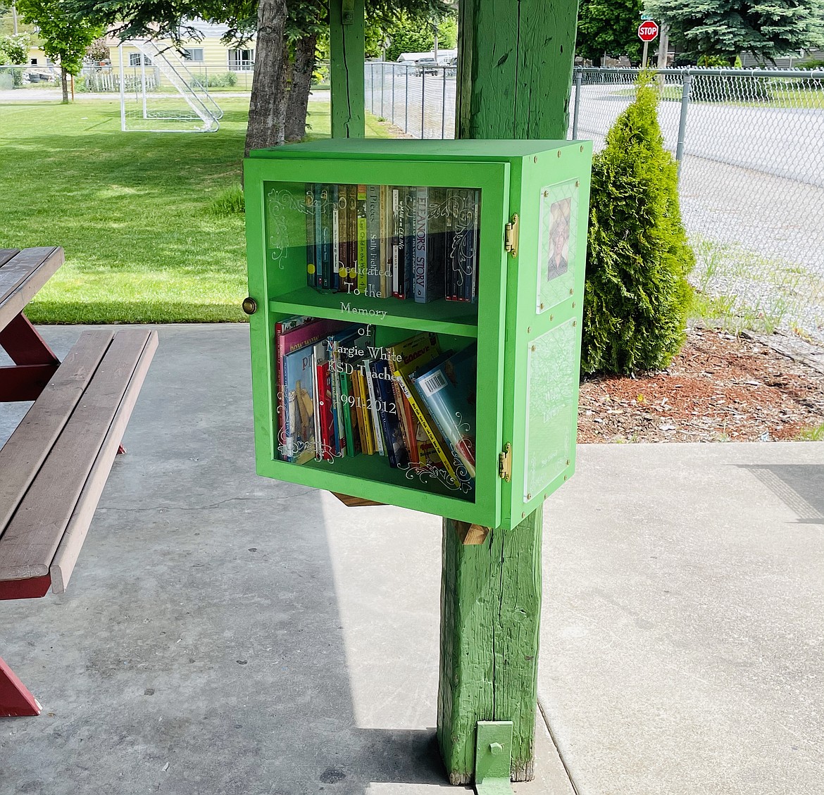 “As much as she loved kids, they loved her back and she was a popular, much-loved teacher,” Guthmiller said. “Now to honor her memory, the Little White Library has been put up in the Smelterville City Park to share those books with anyone who would like to have one, and it is dedicated to Mrs. White. The books in the library are a part of her vast collection and are free to all. The sign on the library says ‘Help Yourself,’ and it is hoped that people will enjoy these books for a long time to come.”