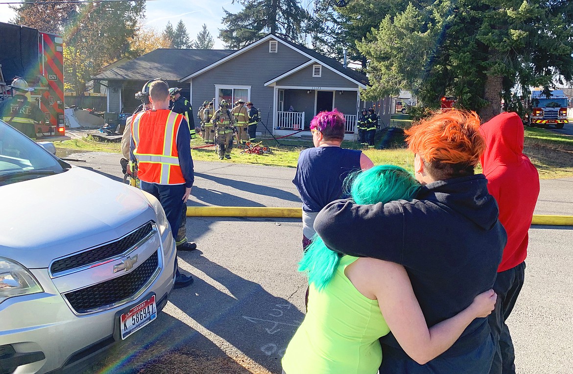 Tesch and several cats escaped from the fire believed to have started in the garage, which was badly damaged with the contents inside mostly destroyed. Firefighters with Northern Lakes Fire Protection District and Coeur d’Alene Fire Department carried a number of burned and charred items onto the driveway.