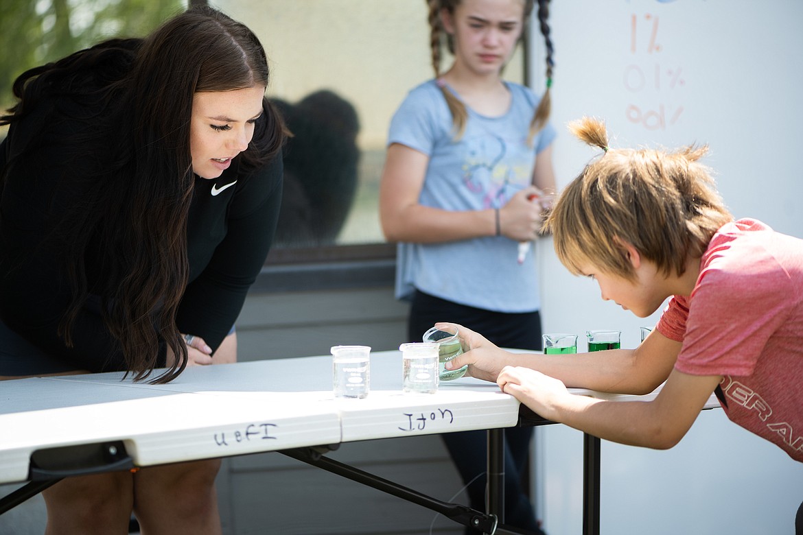 At Camp Sanders in North Idaho, Emma Arman directs campers from station to station, teaching them stages of the water cycle.