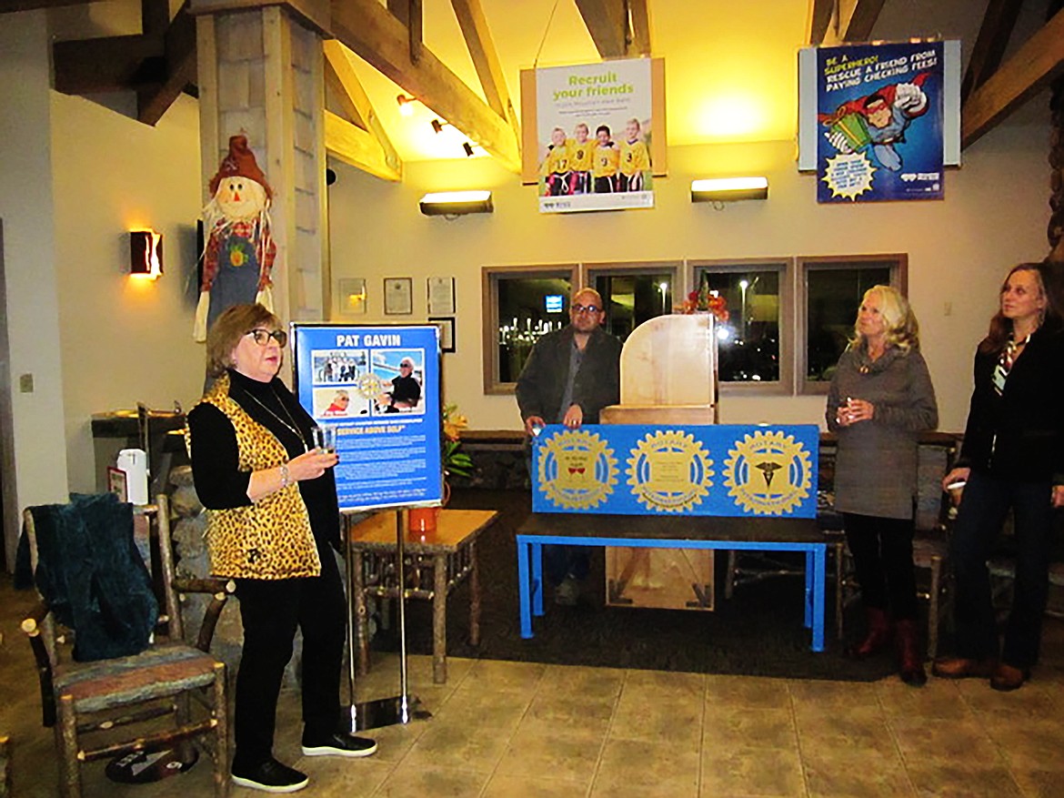 The Rotary Club of Ponderay Centennial unveiled a hand-crafted bench in honor of Patrick R. Gavin, a charter member of the club who exemplified “Service Above Self” throughout his life, in and out of Rotary.