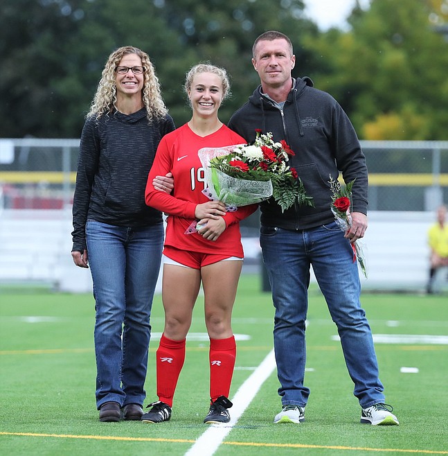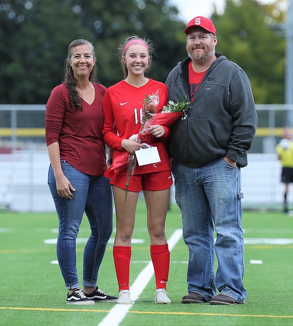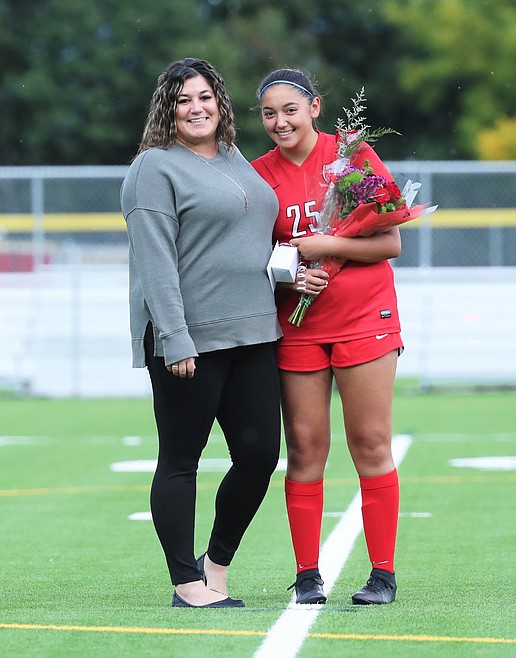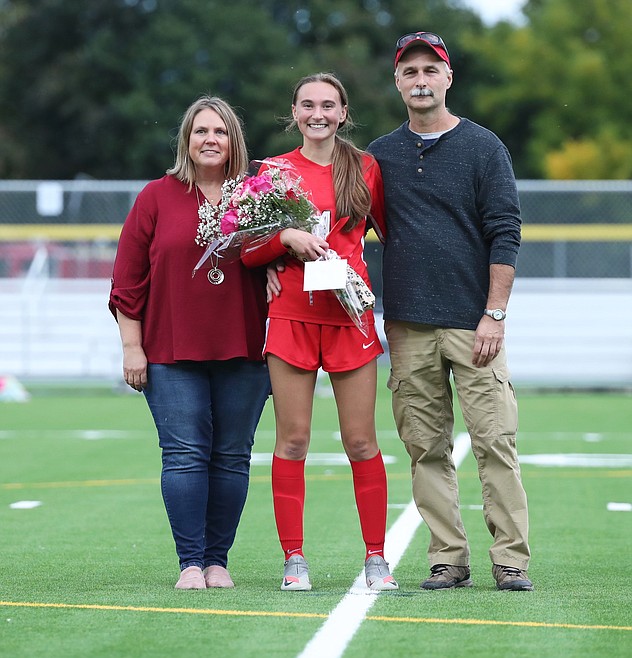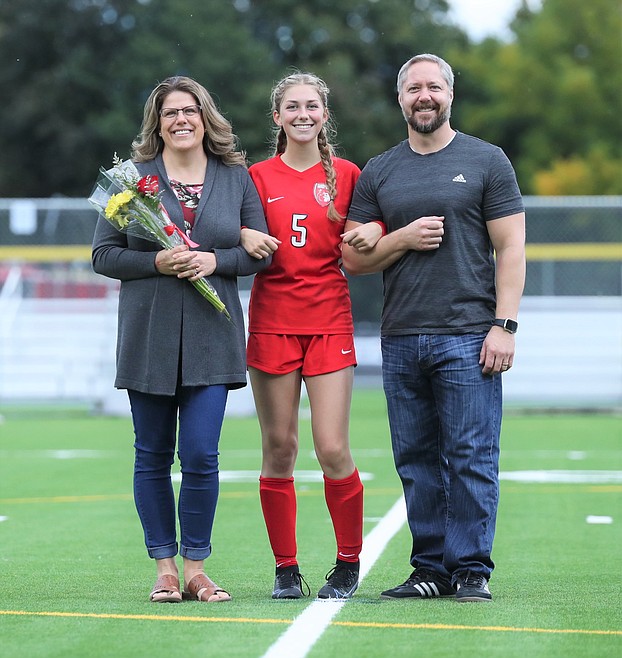 At the half of Thursday's match against Lakeland, the Sandpoint girls soccer team honored its 10 seniors — Averie Brewer, Erin Eddy, Piper Frank, Teyler Hehn, Ava Mazzilli, Kate McGregor, Kalila Tuinstra, Sierrah VanGesen, Ashlee Webster and Kylie Williams.
