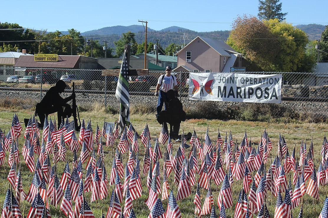 For 30 days in a row, Ed Foste placed 22 American flags in the manicured lawn locally known as "The Greenway" which is Montana Rail Link property but generously shared with the community of Plains.