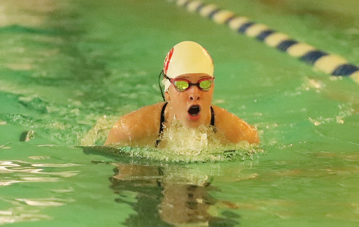 200 freestyle relay — 1, Sandpoint (Emily Ballard, McKinley Jensen, Maren Davidson, Ryleigh Bamer), 2:08.23. 3, Sandpoint (Cassidy Aitken, Sophie Dignan, Georgia Gedde, Sadie Dignan), 2:30.48.