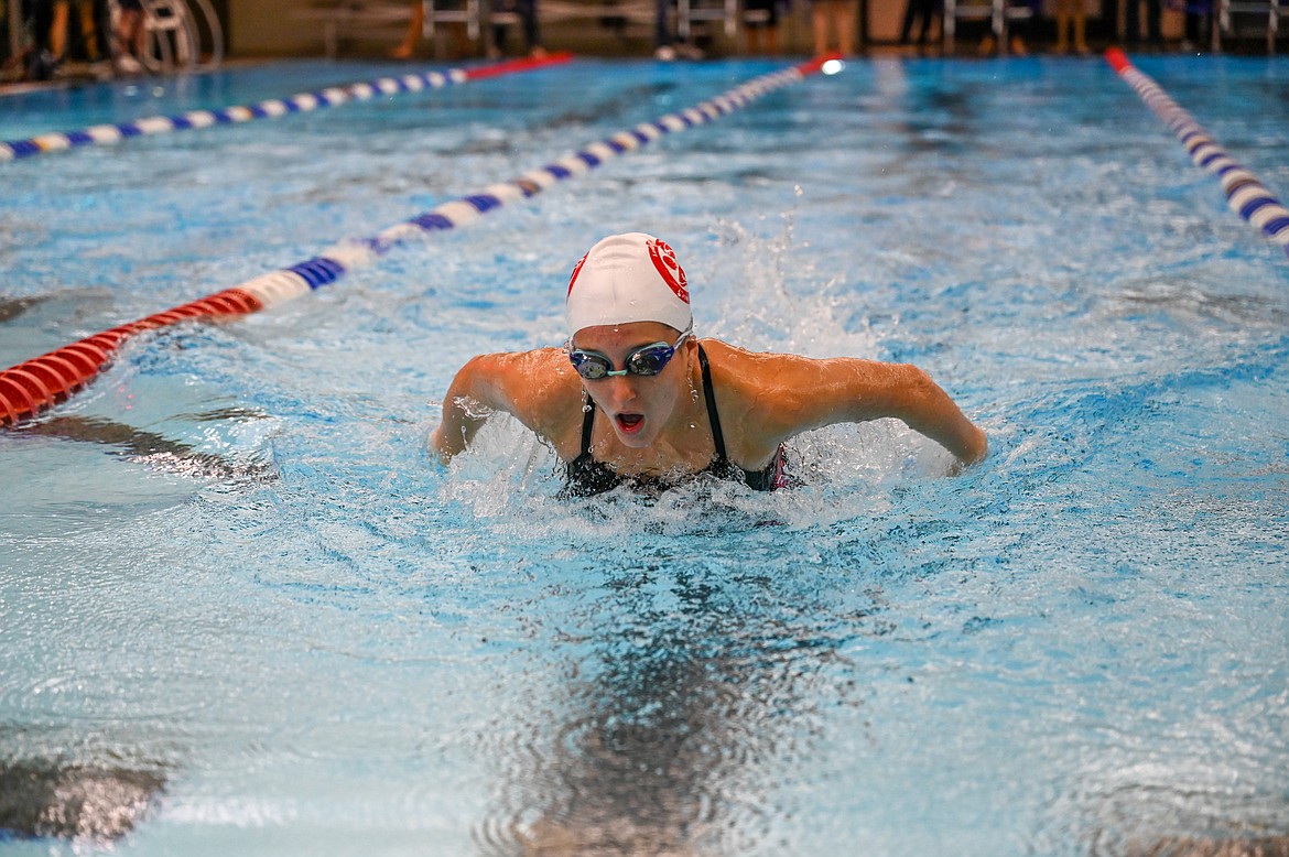 100 butterfly — 2, Ava de Leeuw, 1:18.52. 6, Terra Converse, 1:29.88.