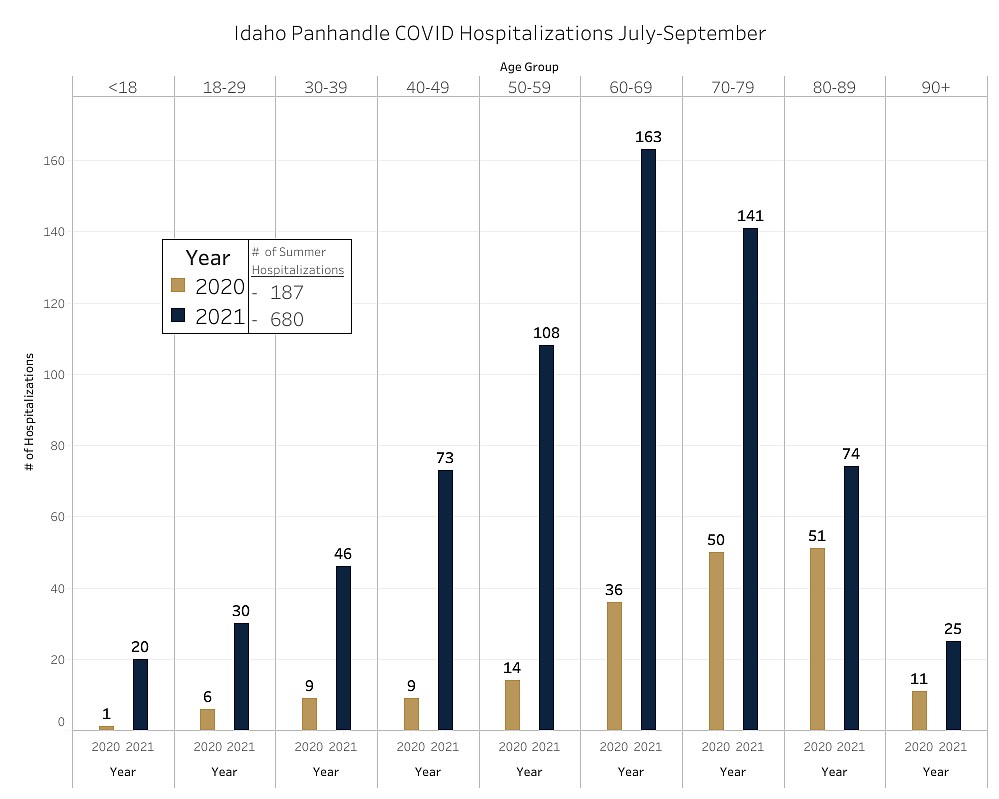 A chart released by the Panhandle Health District on Thursday showed the majority of recent COVID hospitalizations in the PHD were older people.