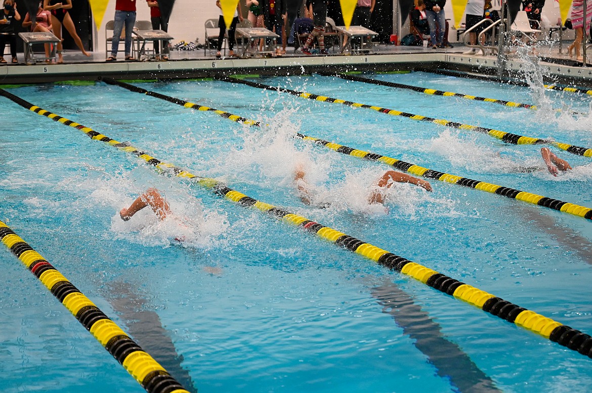 200 freestyle relay — 1, Lakeland (Annika Olson, Sydney Garrity, Avery Sabatke, Sarah Smith), 1:52.42. 2, Sandpoint (Maren Davidson, McKinley Jensen, Ava de Leeuw, Emily Ballard), 1:54.01.