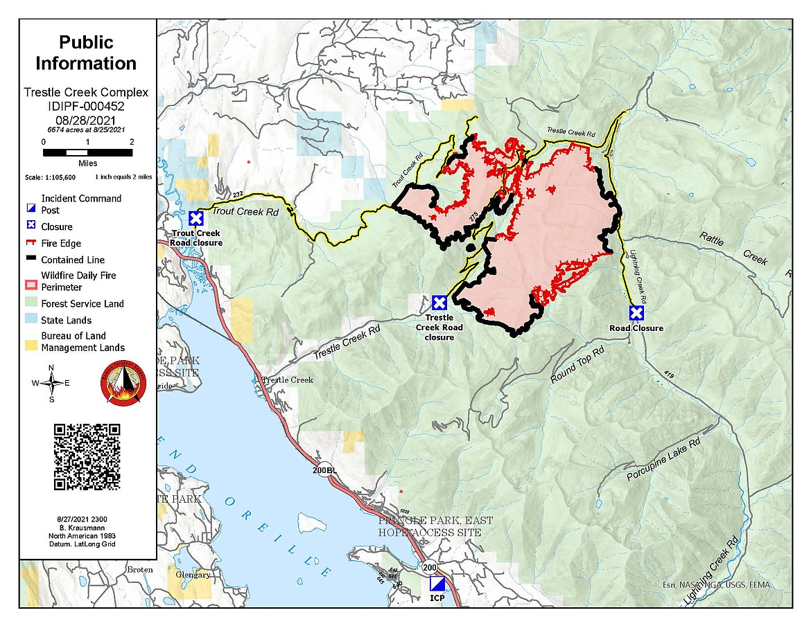 Closed areas: Road 1091, near Lunch Peak, is still closed. Lightning Creek Road remains closed north of the Wellington Road junction. Trout Creek Road, Trestle Creek Road and the adjoining area closures remain unchanged for now. IPNF lands east of Highway 200, and south of Flume Creek and Spring Creek also remain closed.