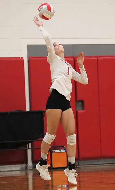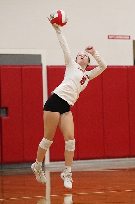 Sophomore setter Audrey Sheffler was able to take the court for Sandpoint after rolling her ankle at Lake City last Thursday. Heading into the match, Alsager wasn't expecting Sheffler to play, but she fought through the pain for her team.