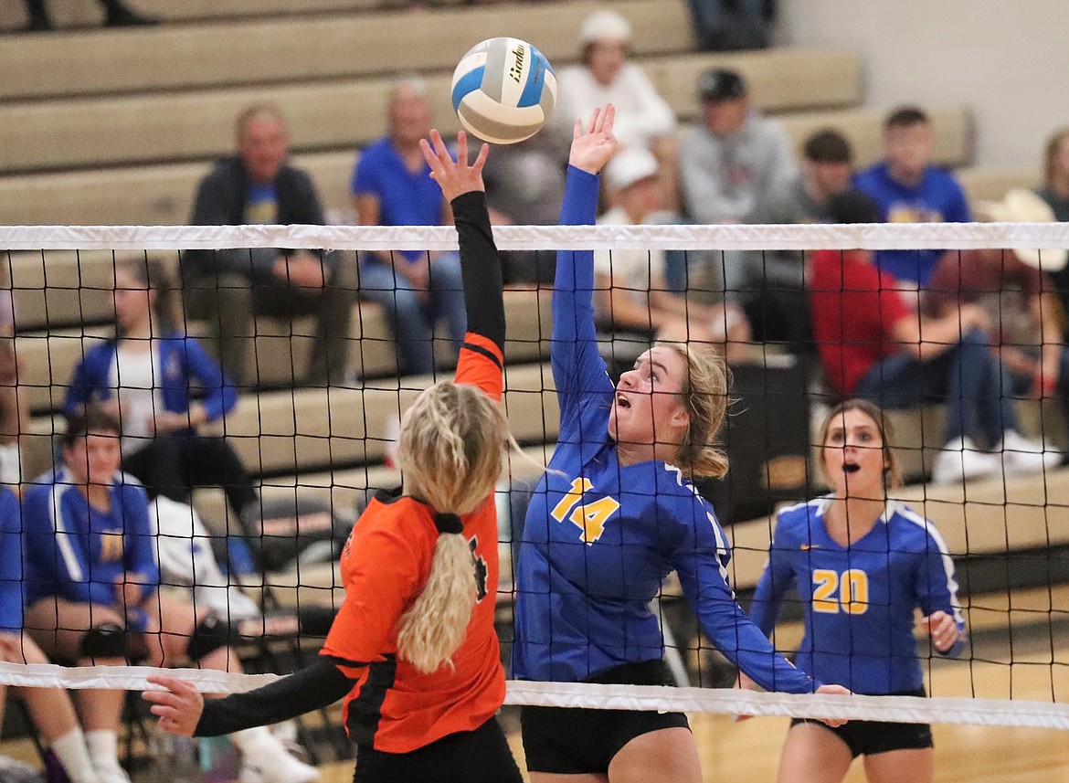 Lilly Reuter served six aces, Paige Valliere tallied 19 assists and Katelyn Matteson tallied nine kills and three blocks.