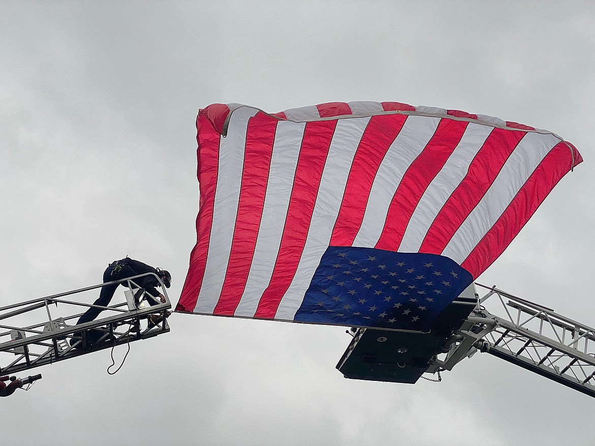 Greeting visitors at the entrance was a large American flag, waving in the wind.