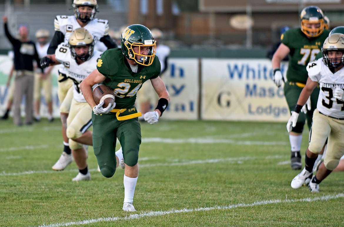 On Thursday, the Bulldogs moved to 4-0 after defeating Stevensville at home in Whitefish; the defense kept the Yellowjackets scoreless in the second half to win 24-6.
