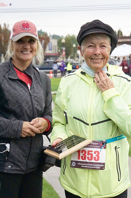 The 2021 Spirit of Autumn Bloom was awarded to Patricia Trout of Spokane. The award recognizes race loyalty, superior attitude, and competitive inspiration for all ages. Race sponsor Keith Campbell presented the 2021 award to the 81-year-old Trout who received a special plaque. Her name will also be added to the perpetual plaque displayed at Newport Community Hospital. With each year, the Foundation will recognize a new winner who, like Trout, embodies the Spirit of Autumn Bloom.