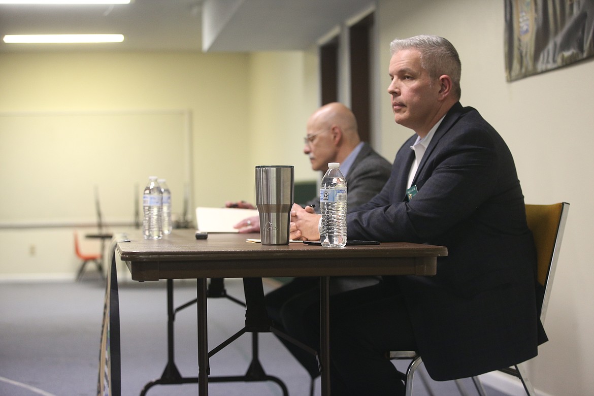 More than 100 people gathered at Mountain Lake Bible Church in Coeur d’Alene to hear Commissioner Chris Fillios and Bruce Mattare answer questions about county issues — and how to solve them.