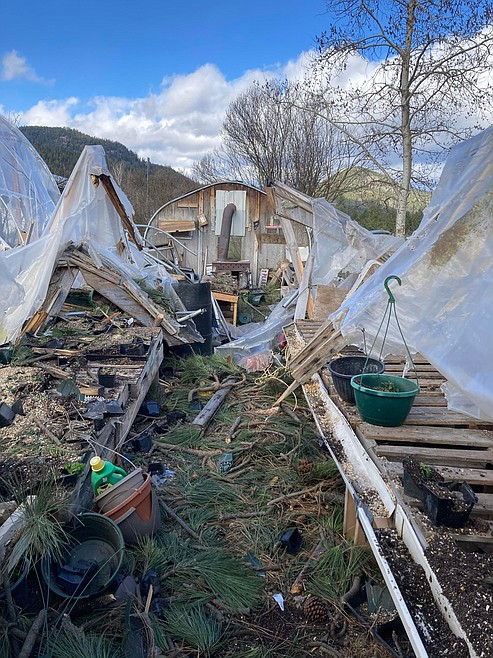 Last week, when high winds toppled two mature pine trees onto Milton Pearce’s greenhouses in St. Regis, it not only took down his garden structures, it knocked him down to the ground as well.