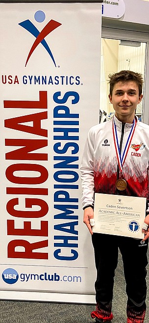 Caden Severtson took 5th on Floor with a 12.600, had a high of 11.950 on Vault and a high of 11.750 on PBars
