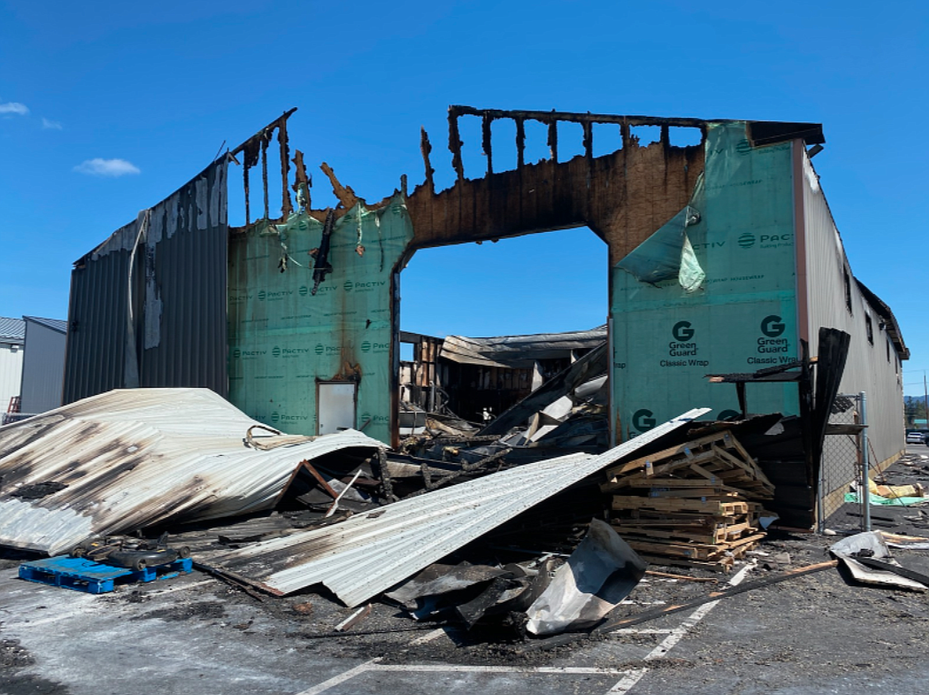The building at 11494 N. Warren St. was consumed by flames after a fire broke out in the work bays where maintenance and repair equipment is kept.