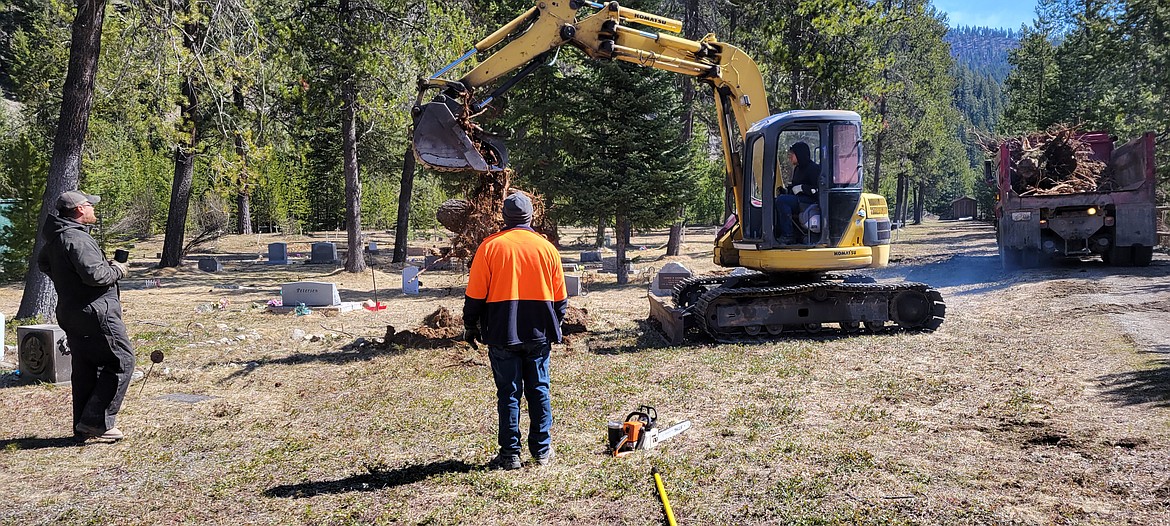 Luke Boyce, Terry Erickson and Jeff Mask, all county employees, drove an excavator and dump truck to the west end and started pulling the tree stumps.