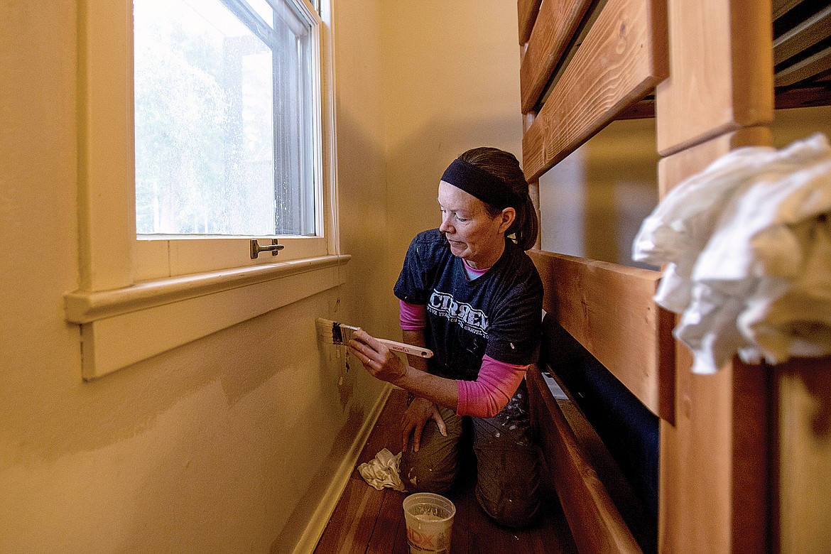 Buckets of brown paint, rollers, blankets and tape waited inside the 1960s era employee house on a suburban street, ready for the eager volunteers to get started on a chilly spring morning, not a mile from Glacier National Park Headquarters.