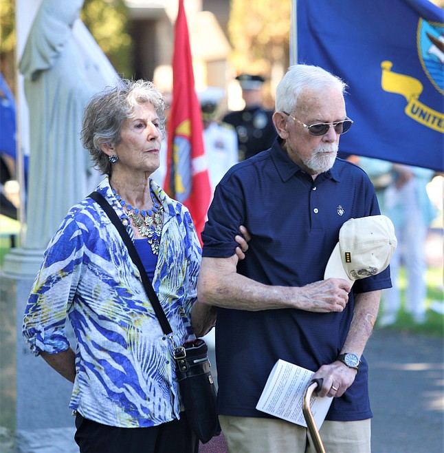 Julia Mangan held the arm of her husband, veteran James Mangan, as they watched the ceremony.