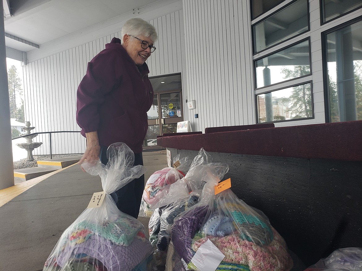 The Knit Wits knitting group gathered 1,696 different knitted goods Wednesday at Lake City Center to distribute as Christmas presents to groups like local head starts, Meals on Wheels and St. Vincent de Paul North Idaho.