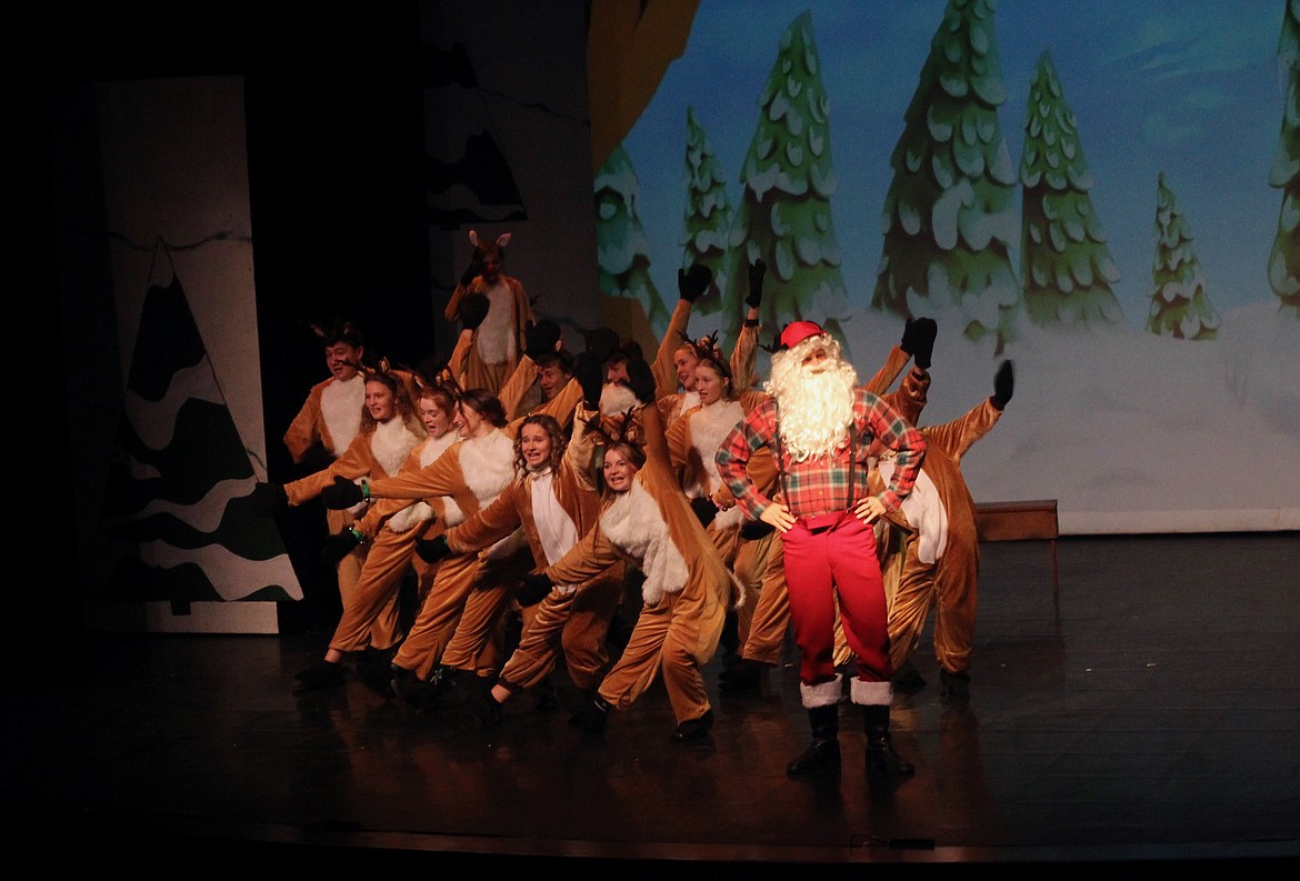 Once the cast list is decided, the group hits the ground running. Their Christmas show poses a unique challenge compared to shows other times a year— because they are off for the Thanksgiving holiday they must practice at home to succeed at rehearsal. Until it’s time for opening weekend, they rehearse from 4:30 to 8 p.m. a few nights a week.