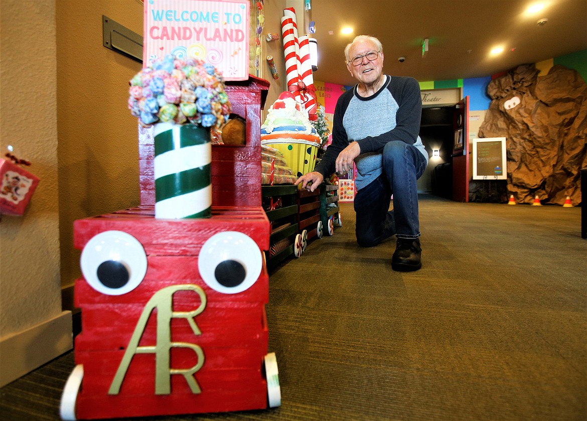 The community director of Affinity at Coeur d'Alene put out a call for someone to build a colorful train as part of the Christmas decorations for the lobby of the 55 and over community.