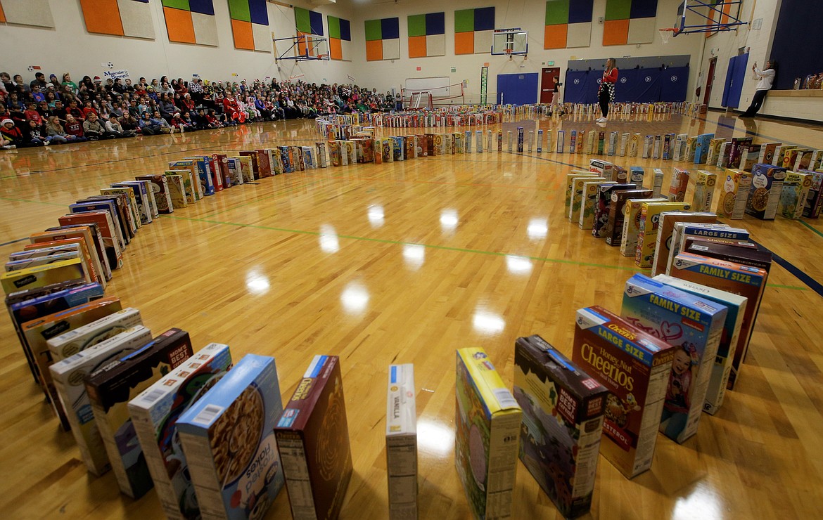 Friday morning, more than 700 colorful cereal boxes snaked around the gym floor to prove they've not only been listening, but taking action, too.