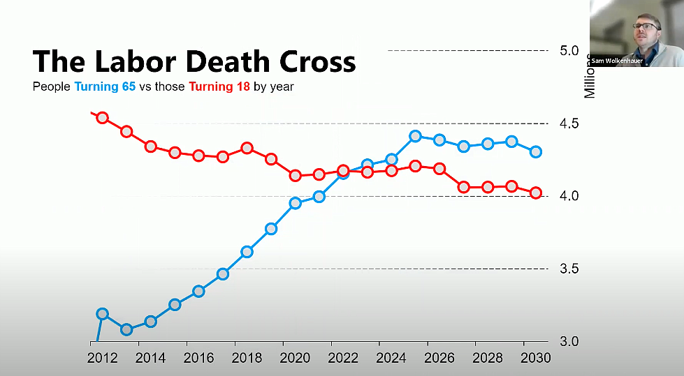 "And just based on our demographic shape, that is going to be the case for the foreseeable future," Wolkenhauer said. "We're fighting against the brute reality of time, so to speak. Every year, more people are going to turn 65 than 18, and the labor force is going to be shrinking in the face of demographic decline."