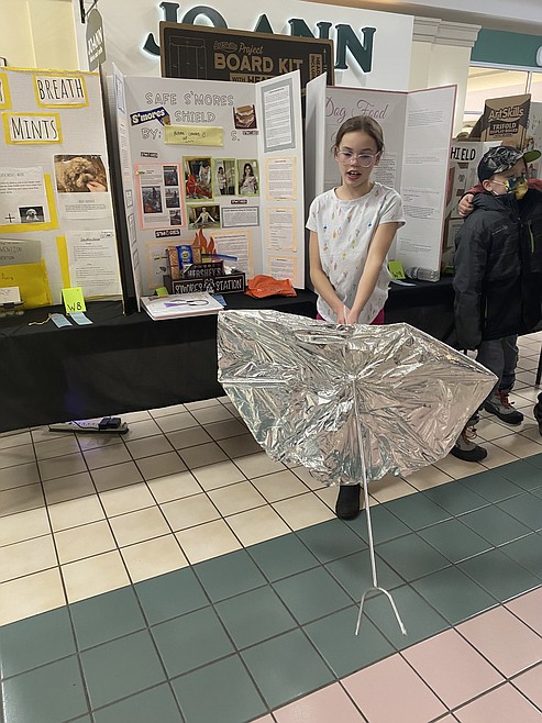 Nine-year-old Declan Rider, a fourth-grader from Spirit Lake Elementary School, created the “No Power Plane.” His brother, Rory, grandparents Cathy and John Rider, and aunt, Amy Rider, were onsite at the Silver Lake Mall on Sunday, listening to Declan’s project details.